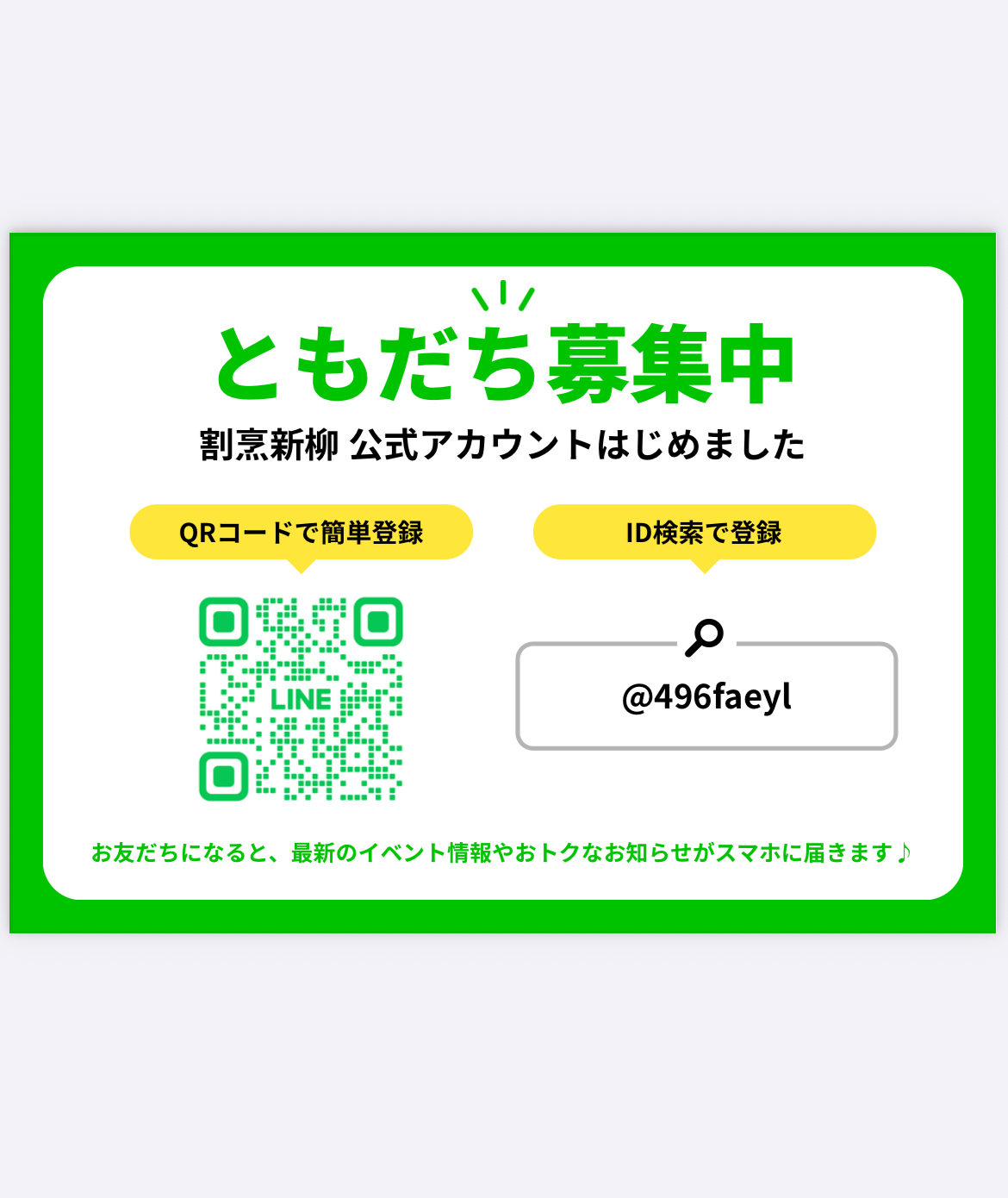 このたび割烹新柳のLINE公式アカウントを開設いたしました。